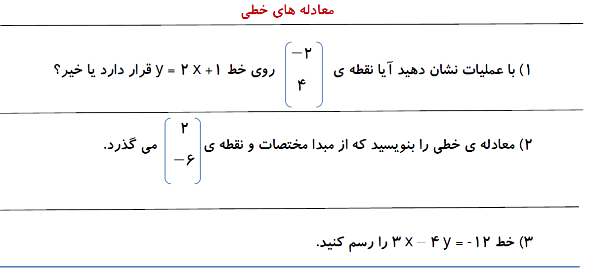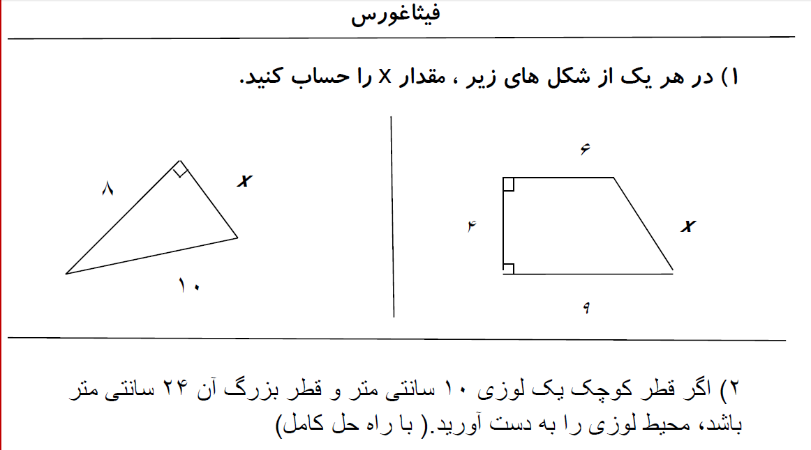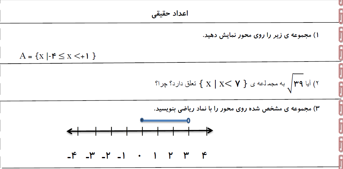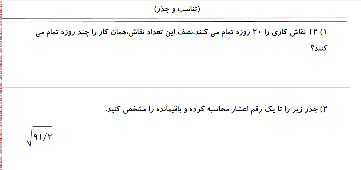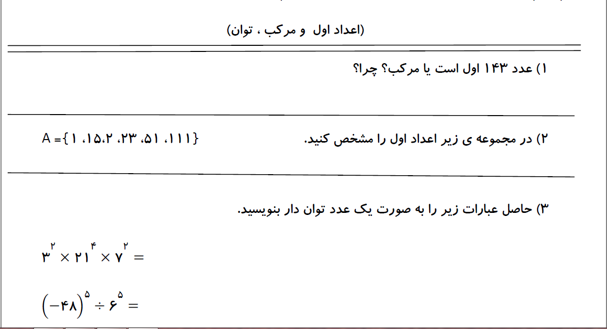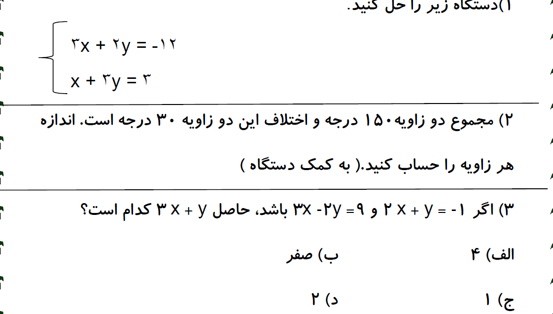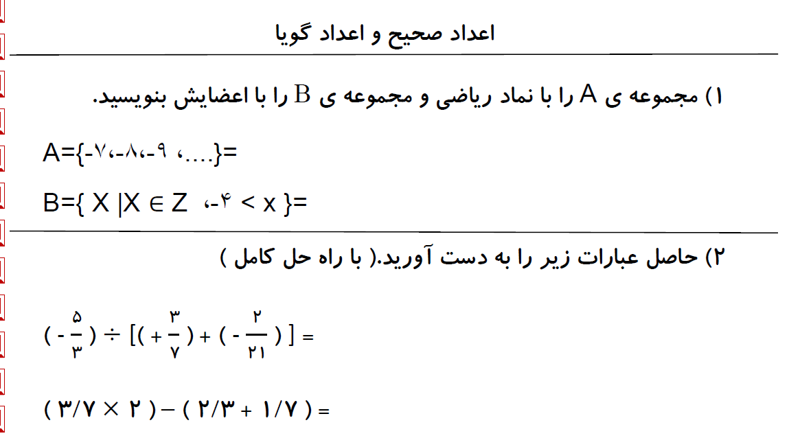 نمونه سوالات فصل اول ، پایه هشتم