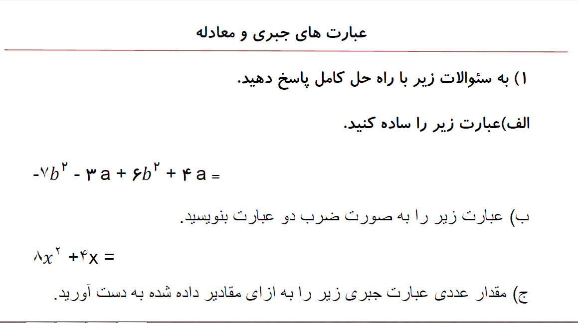 عبارت های جبری و معادله