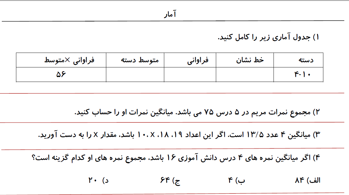 آزمون پنجم( پایه هفتم)