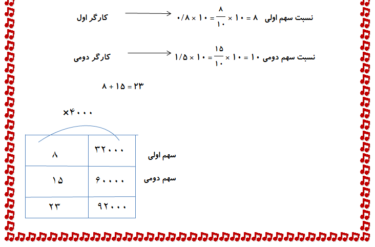 ببخشید ولی چرا در سهم کارگر دوم به جای عدد15 عدد10 را گذاشته اید؟؟؟؟؟