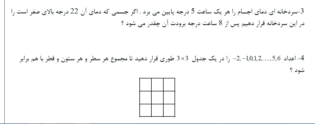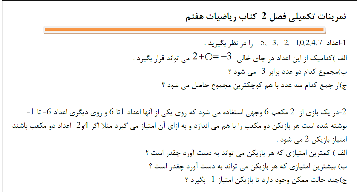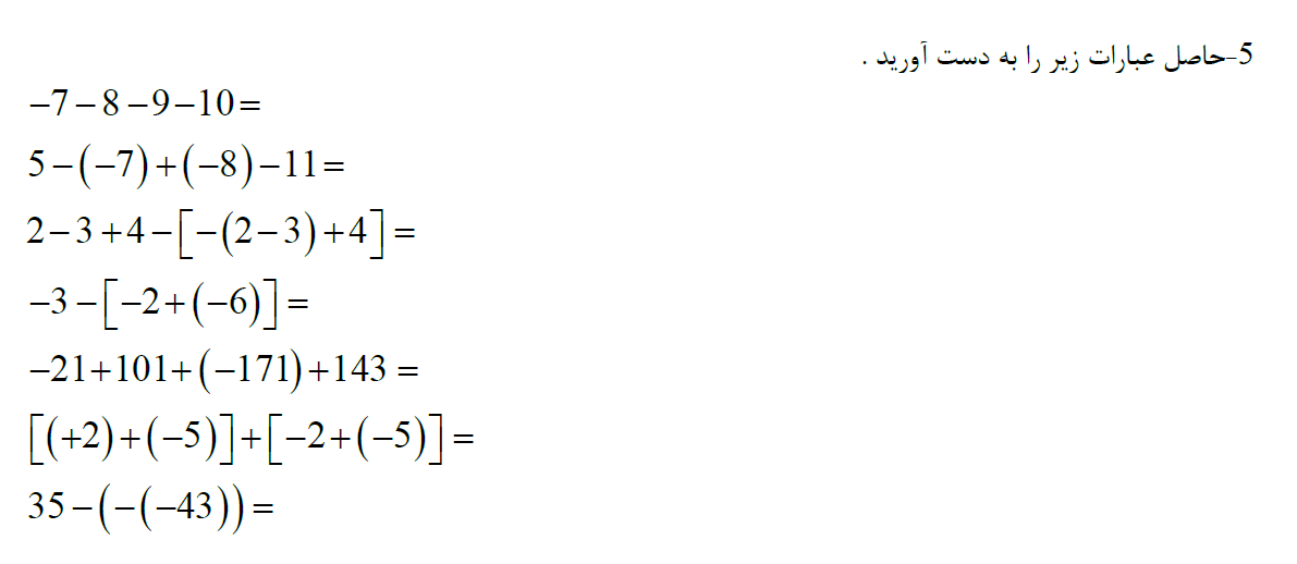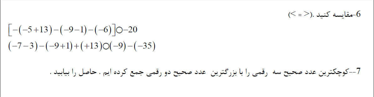 سئوالات تکمیلی مربوط به جمع و تفریق اعداد صحیح( بخش ۲)