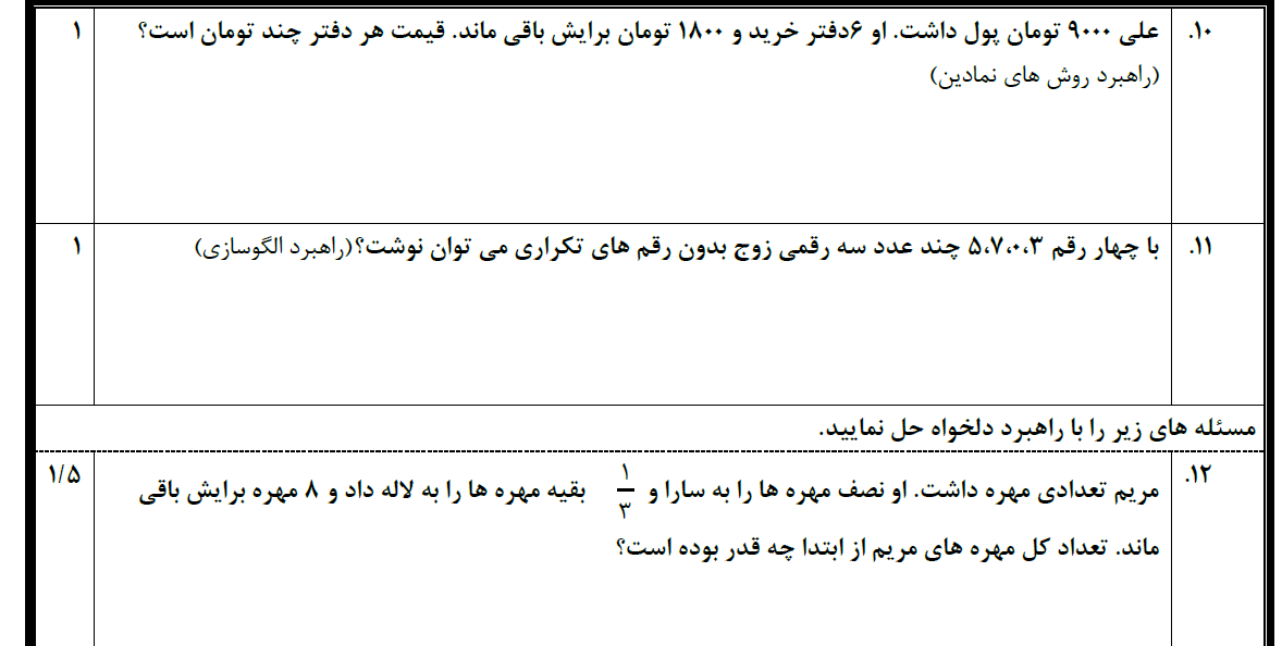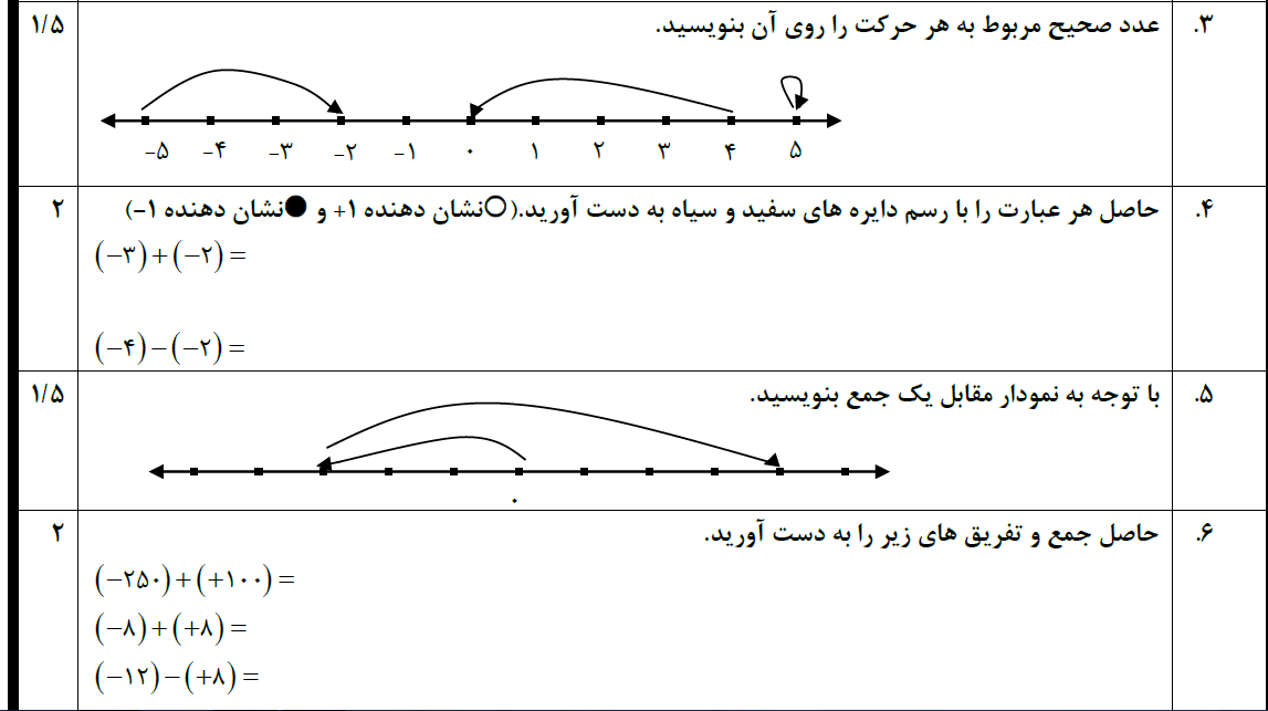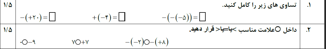 سئوالات تکمیلی مربوط به فصل ۱ و۲ ( ریاضی هفتم)