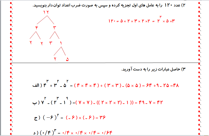 نمونه سوالات فصل اول ، پایه هشتم