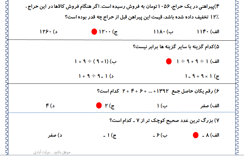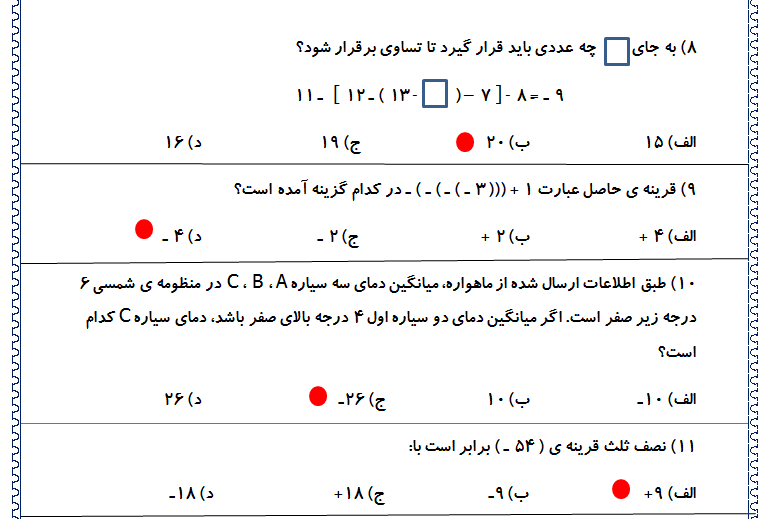 معذرت میخواهم من در ورقه خود سوال نه را 4- را زده بودم ...!!!