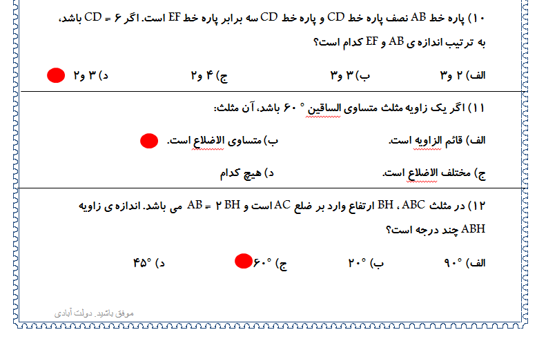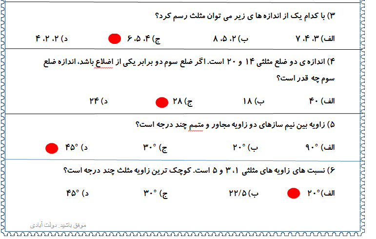 دختران خوبم جواب سئوالات خودتون رو چک کنید.