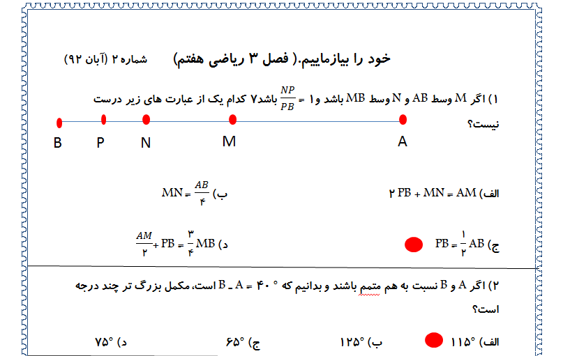 اگر احیانا جواب شما با پاسخ نامه یکی نبود حتما به بررسی آن سئوال بپردازید.