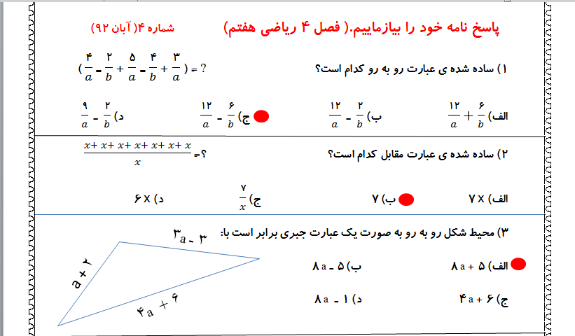 کلاس تابستانی( جلسه نهم) ـ پاسخ نامه خود را بیازماییم ( شماره ۴)