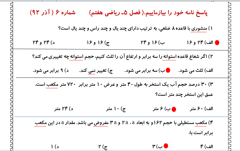 پاسخ نامه خود را بیازماییم شماره ۶ را در ادامه مطلب مطالعه کنید.