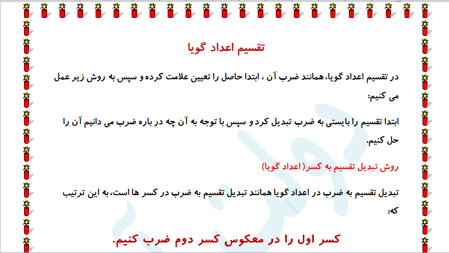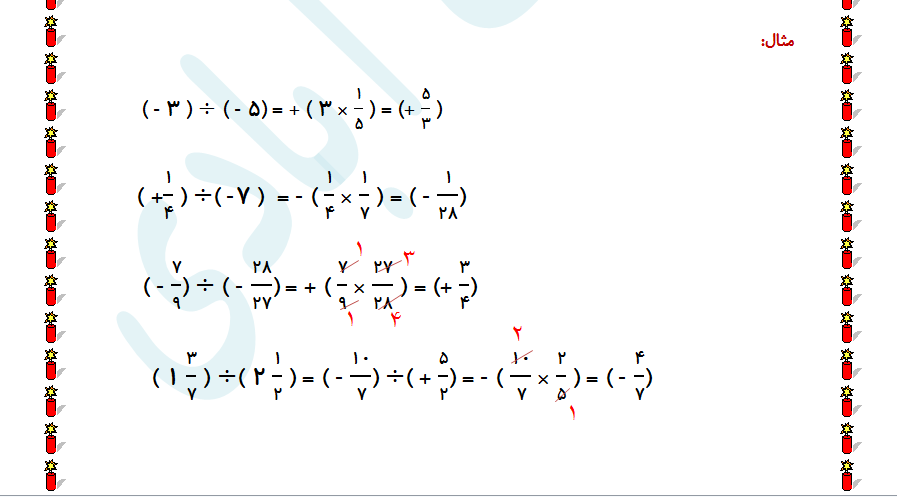 سلام خانوم دولت آبادی خسته نباشید.عیدتون مبارک.شرمنده نکته ی دیگری پیدا کردم و ترجیح دادم بیان کنم تا دوستانم هم دچار اشتباه نشوند.در عبارت اول کسر اول در معکوس کسر دوم حاصل3/5 را به ما می دهد و حاصل عبارت آخر هم مثبت میشود.زیرا هر دوکسر مثبت هست.اگر ایراد از کار من است من را راهنمایی کنید.باتشکر