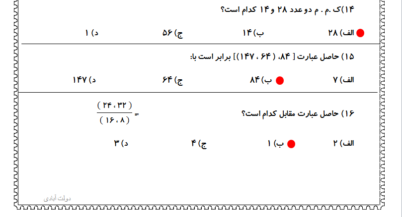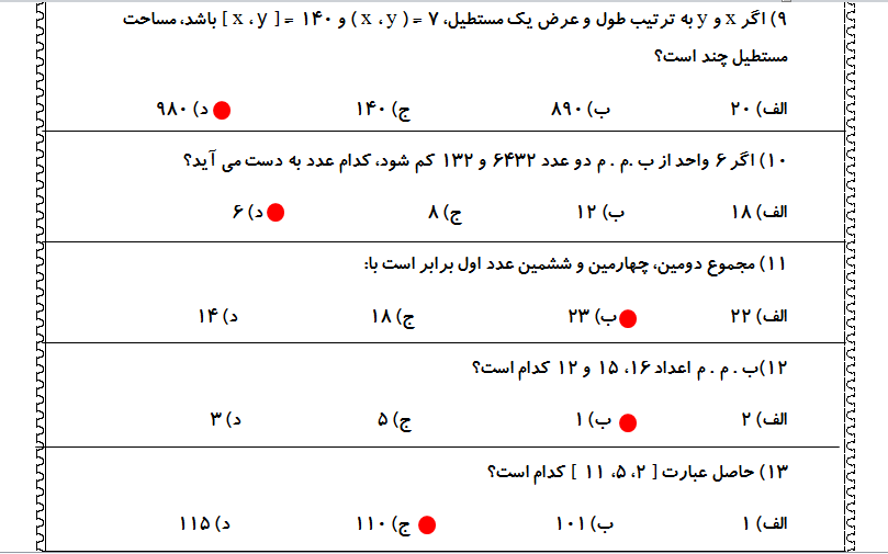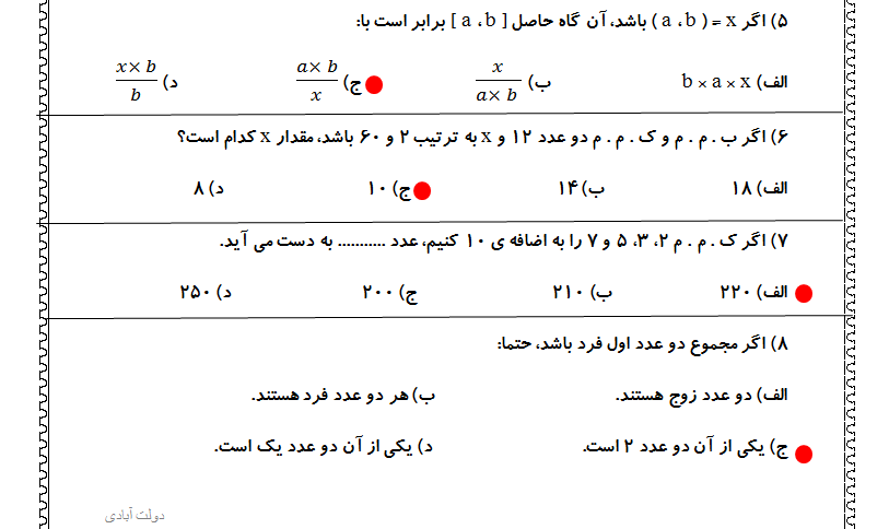 نمونه سئوالات ترم اول و دوم پایه هشتم