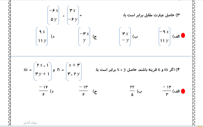 سلام روزتون بخیرومن دانش آموز نیستم اما حدود12 سال پیش منم دانش آموز ریاضی بودم و چندوقتیه باز حال و هوای ریاضی به سرم میزنه،وبلاگ شما علاوه برقالب زیبا مطالب خوب و مفیدی داره!راستش من دوتا معما ازم پرسیدن ک به جبر مربوط میشه اما نتونستم حلش کنم،گفتم بیام از شما بپرسم ببینم آیا بمن کمک میکنین یا نه!البته اگروقتشو داشته باشید خیلی ذهنمو درگیر کرده آخه،مرسی