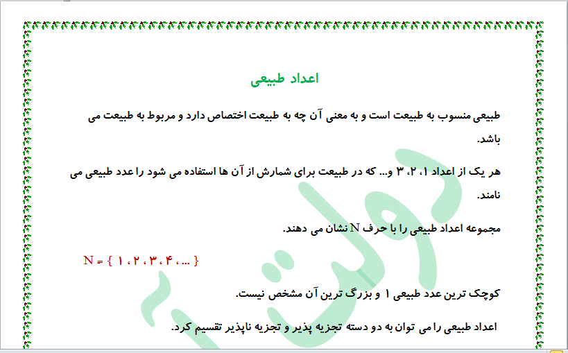 جلسه بیستم کلاس های تابستانی پایه هشتم - اعداد طبیعی