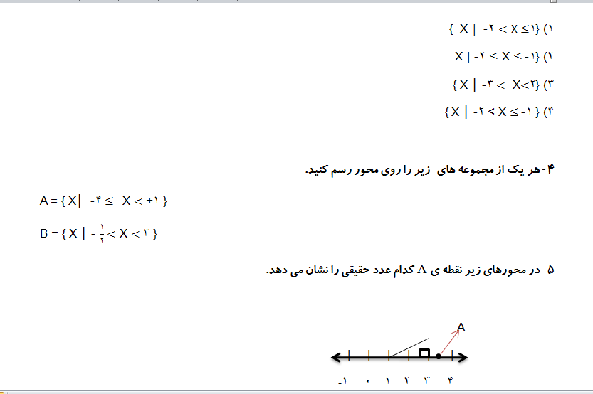 نمایش زیر مجموعههای اعداد حقیقی روی محور اعداد: هر مجموعه از اعداد که شامل طیفی متناهی یا نامتناهی از اعداد حقیقی باشد، زیر مجموعهای از اعداد حقیقی است. به عنوان مثال مجموعهی اعداد حقیقی بزرگتر از 5 را در نظر بگیرید: