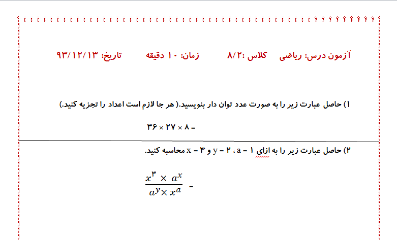 آزمون دوم در تاریخ ۹۲/۴/۳۰ از ساعت ۱۷(۵ بعد از ظهر) الی ۱۹( ۷ بعد از ظهر ) برگزار می شود و شما مانند آزمون اول بایستی در طول این دو ساعت پاسخ ها را برای اینجانب یه طور خصوصی ارسال کنید.