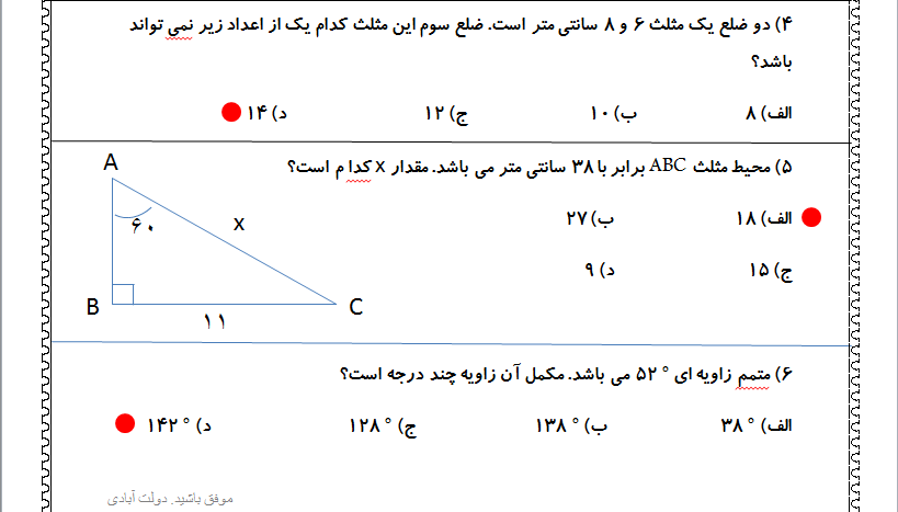 محتوای آزمون از مبحث اعداد گویا می باشد.
